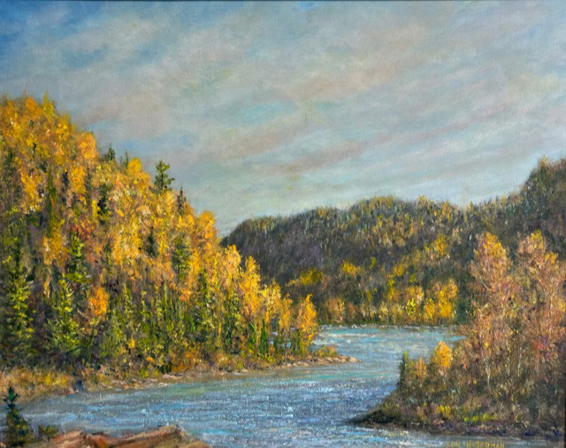 Rutger Becker who had his acrylic painting entitled "Lily Pond" accepted, Ken Hagerman who had his oil entitled "The Mighty Mississagi" accepted, Judy Henderson who had her oil entitled "Artistic Legend" accepted, Dawn Jennings who had her Coloured Pencil and Ink entitled "Nothing Gold Can Stay" accepted, Mary-Lou MacDonald who had her Mixed Media entitled "Commissioned-Decommissioned" accepted, Gary Manzo who had his acrylic entitled "Figure in Motion" accepted, Hilkka Pellikka who had her acrylic entitled "March in Hiawatha Park" accepted, and Warren Peterson who had his Acrylic entitled "White Water Rapids Pukaskwa National Park" accepted.
