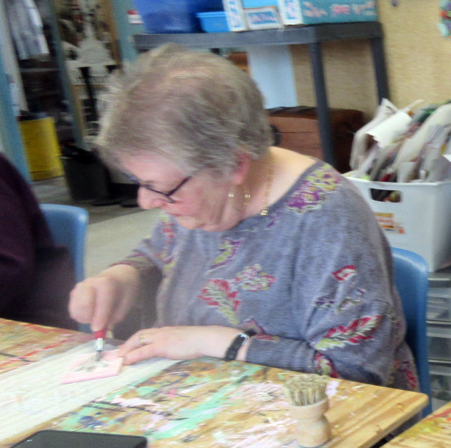 Eleven Algoma Art Society members enjoyed participating in an Oil Monoprint Workshop with instructor Karen Nisbet.