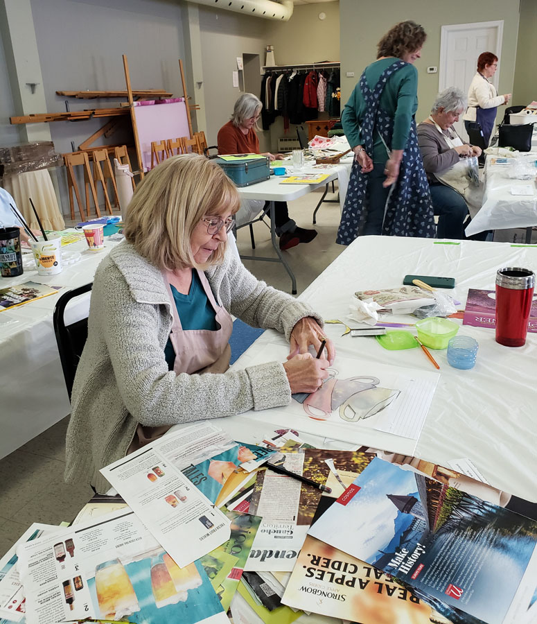 Eleven Algoma Art Society members enjoyed participating in an Oil Monoprint Workshop with instructor Karen Nisbet.