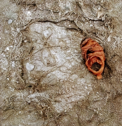 At the age of 60 Murray enrolled in university and graduated from Algoma Laurentian with his degree in political science. With a new-found interest in writing, he completed his memoirs of his final homicide cold case, Lanyard, the 1945 murder of a local high school student. Out of respect for the living members of the family the book was never published. In this latest chapter of his life Murray has developed his own unique style of mixed media artwork blending fabric and adhesive with acoustic board. Nature in all its grandeur provides the stage for Murray’s abstract interpretation.