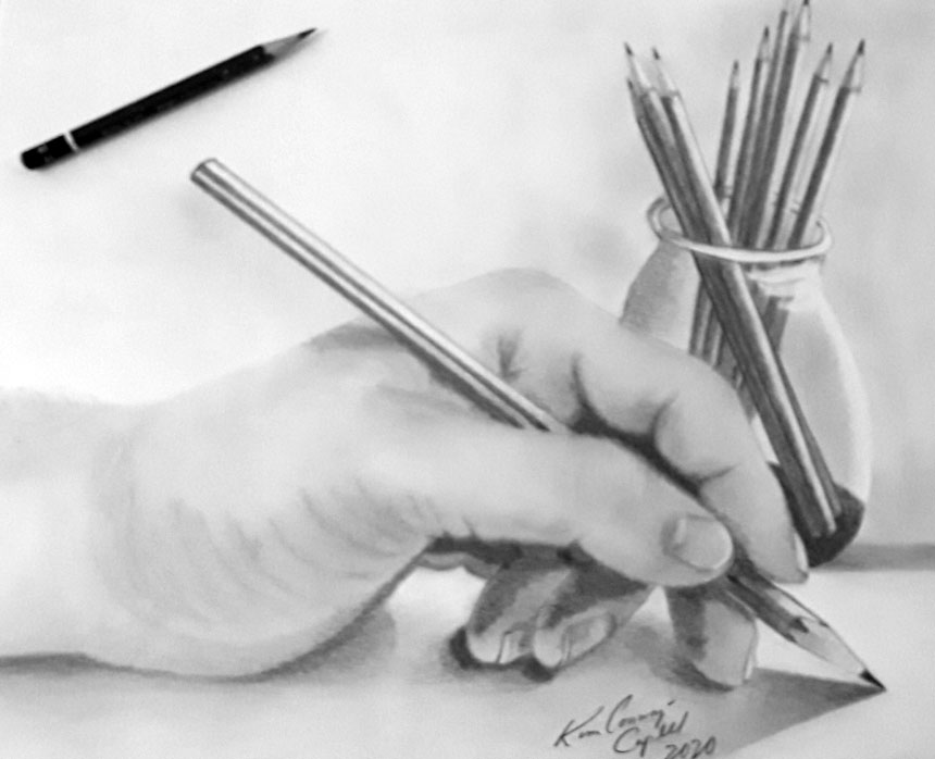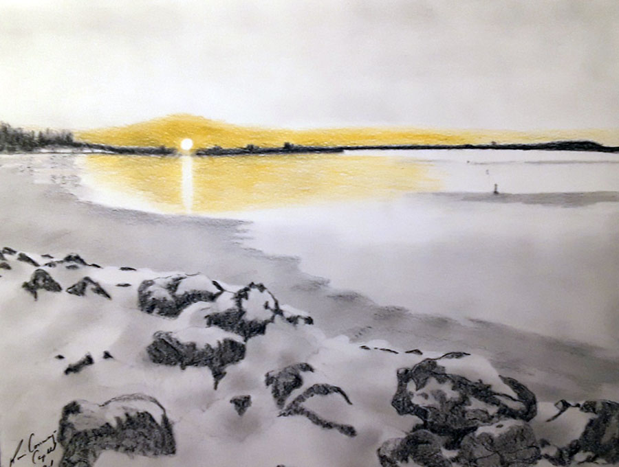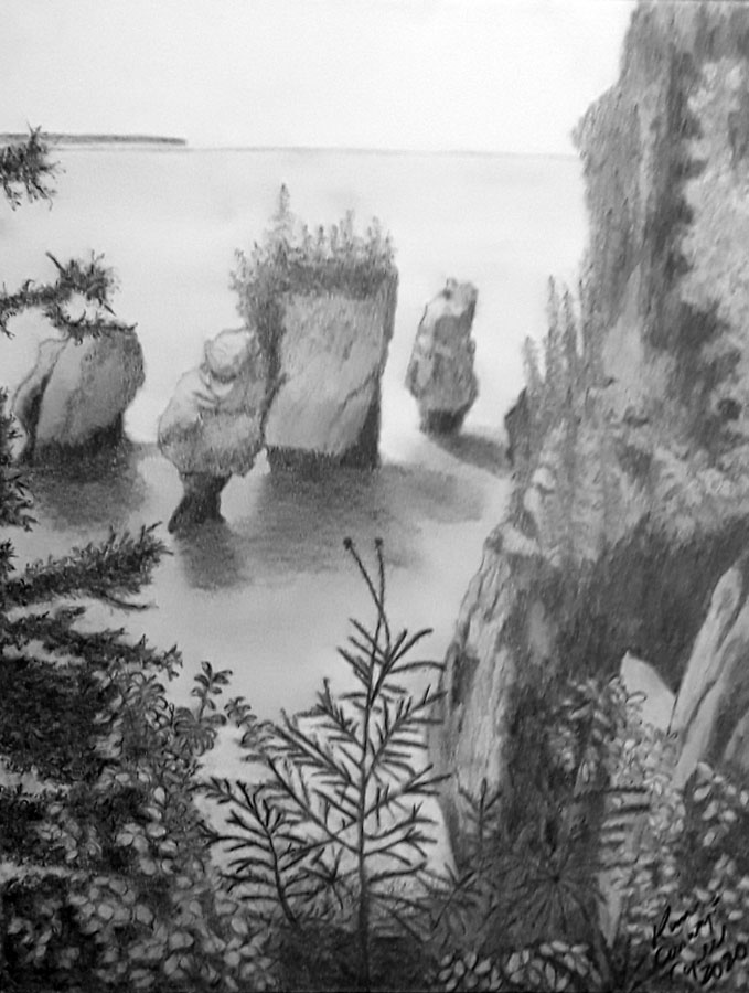 She is naturally gifted, like her mother, in sketching portraits, landscapes and still life. She has a camp on Lake Superior where she captures with colored pencils the beauty of the land. She also enjoys photography with which she has used to compose most of her drawings. She has also used charcoal and pastels in the past.